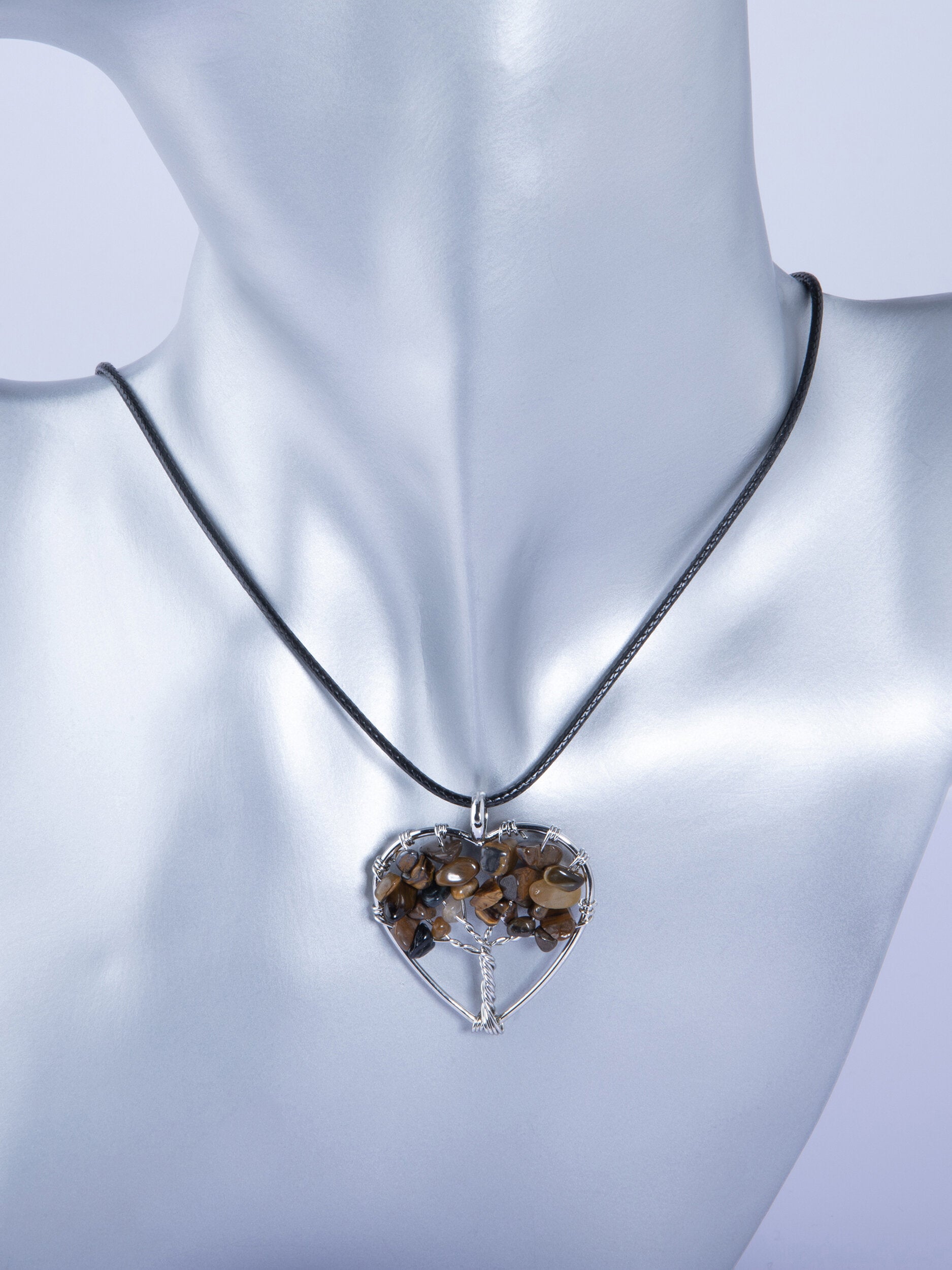Tento kouzelný přívěsek ve tvaru srdce oživí každý outfit! Zaujme zejména romantické ženy se silnou vazbou k rodinnému životu. Přívěsek ve tvaru stromu života, osázeno kaminky tygřího oka. Průměr přívěsku je přibližně 2,8 cm.