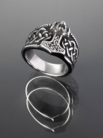 Exkluzivní pánský prstýnek z chirurgické oceli s keltským motivem kladiva a rytými detaily je skvělým doplňkem k jakémukoliv outfitu. Šířka prstýnku je od 0,7 do 1,8 cm, k dostání jsou různé velikosti. Prsten se zezadu rozšiřuje, vpředu je zdoben výrazným keltským motivem kladiva, ze stran je zdoben rytými detaily. Prsten působí velmi nadčasově a elegantně.