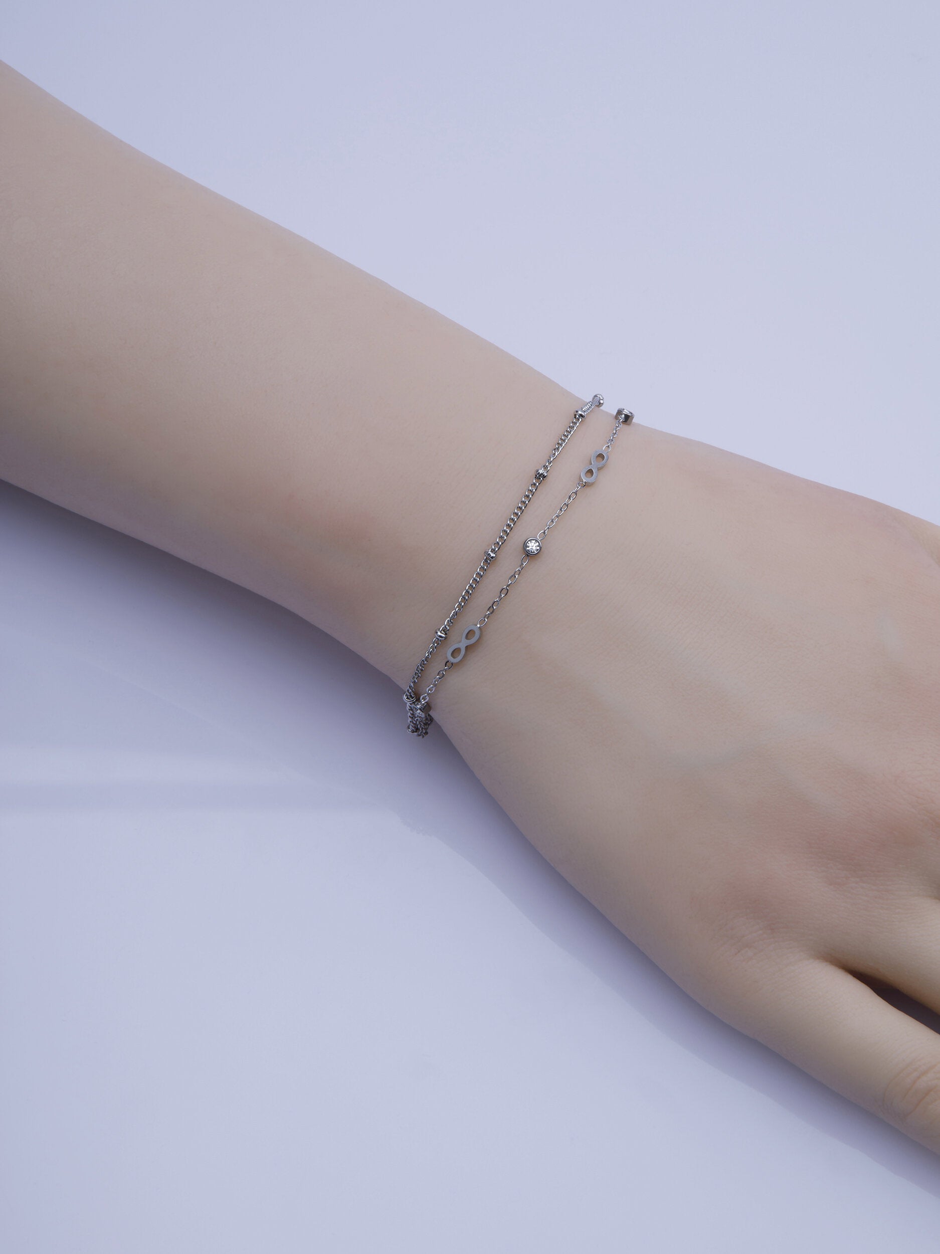 Náramek je tvořen dvojitým řetízkem stříbrné barvy, na kterém jsou umístěny motivy nekonečna, zpracování působí opravdu vkusně a nadčasově.
