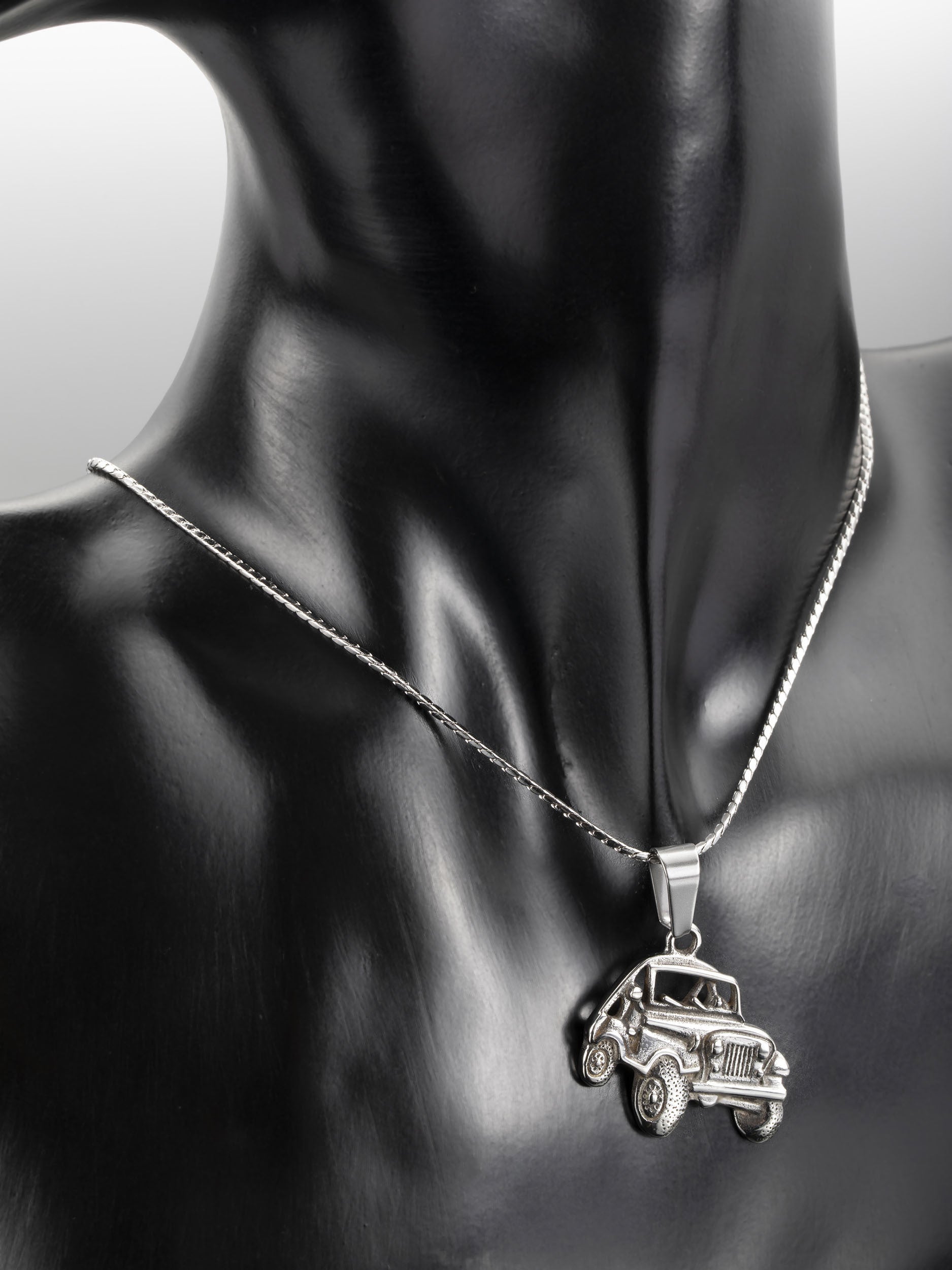 Exkluzivní masivní přívěsek ve tvaru auta z chirurgické oceli je skvělým doplňkem k jakémukoliv outfitu.