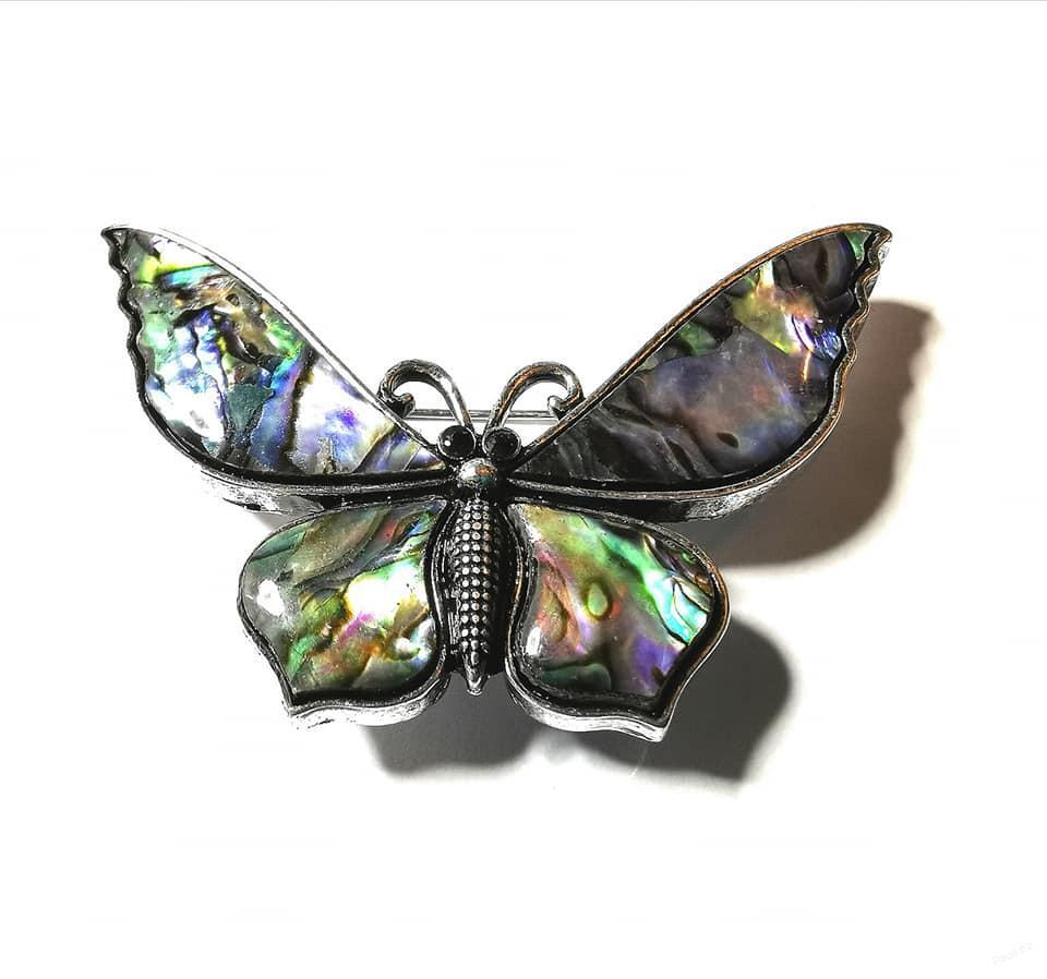 Exkluzivní masivní přívěsek ve tvaru motýla z chirurgické oceli s modrou perletí Paua je skvělým doplňkem k jakémukoliv outfitu.