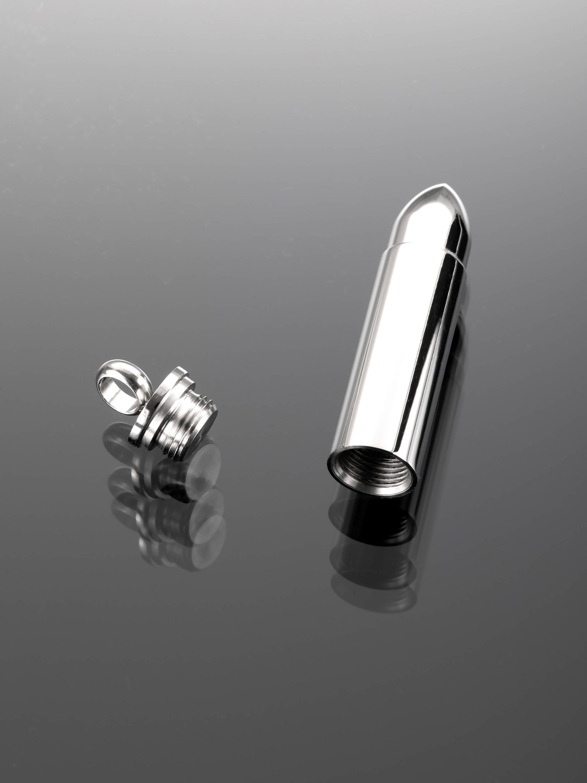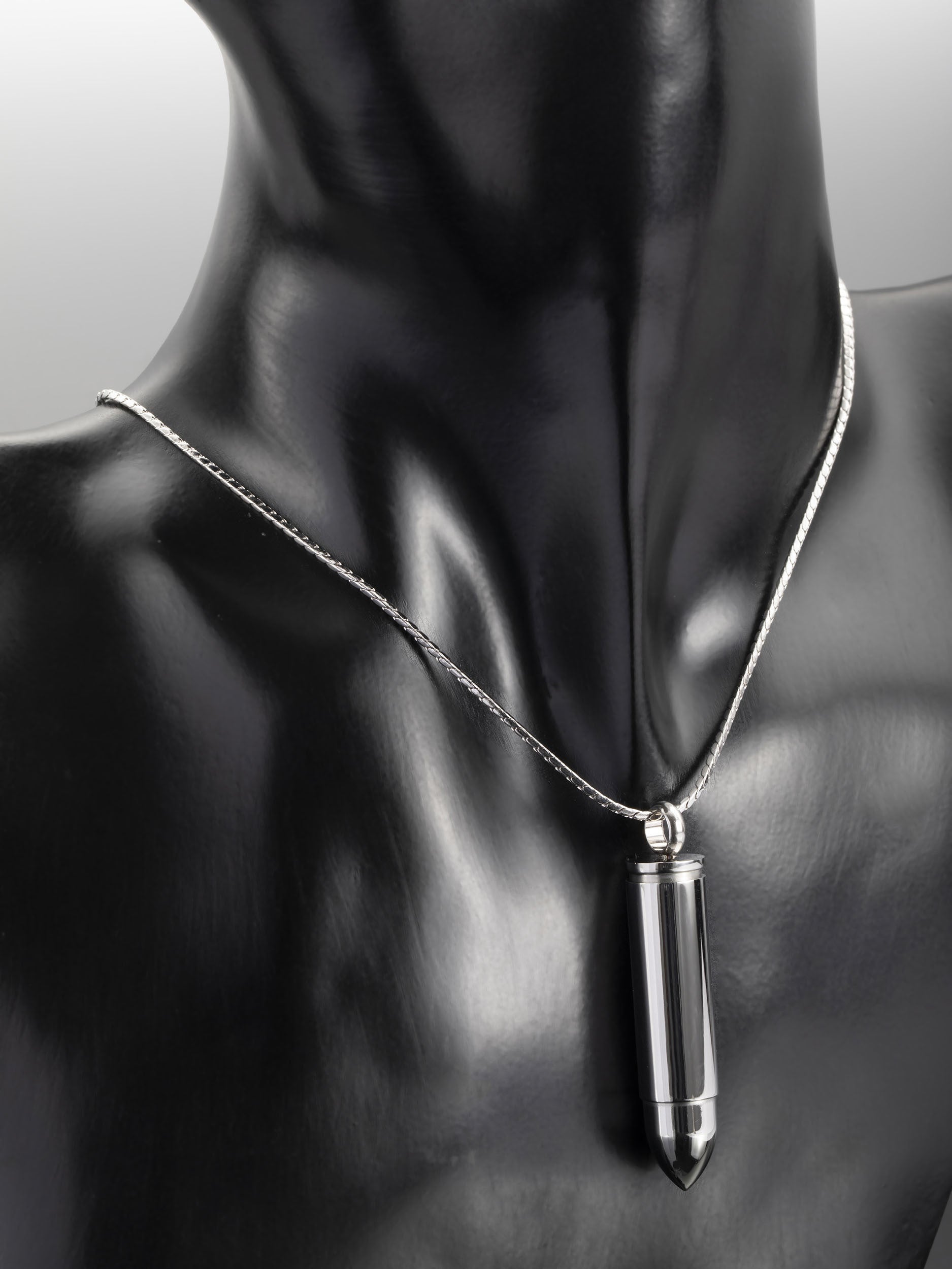 Exkluzivní masivní přívěsek ve tvaru náboje z chirurgické oceli je skvělým doplňkem k jakémukoliv outfitu.