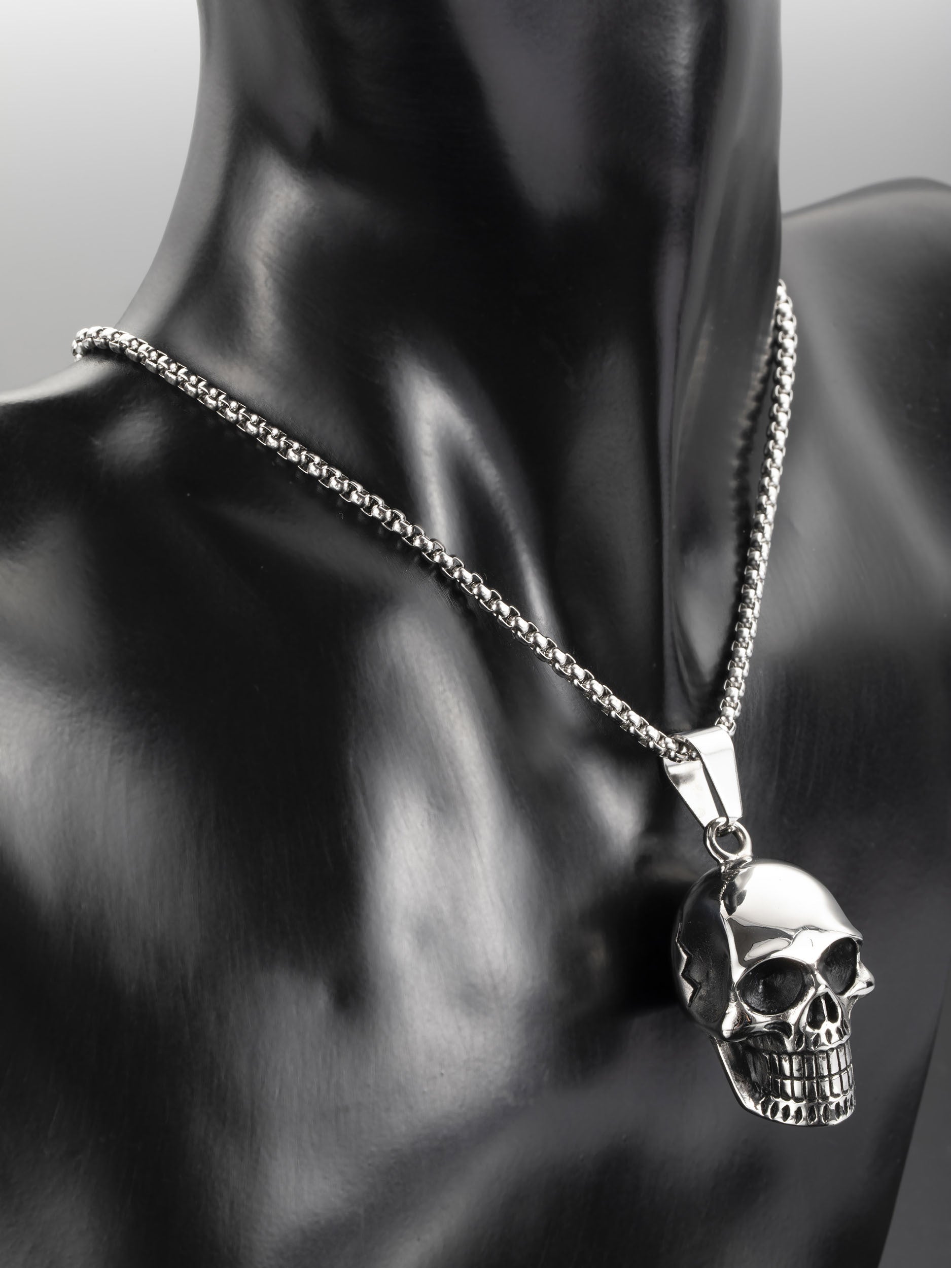 Exkluzivní masivní přívěsek ve tvaru plastické lebky z chirurgické oceli je skvělým doplňkem k jakémukoliv outfitu.