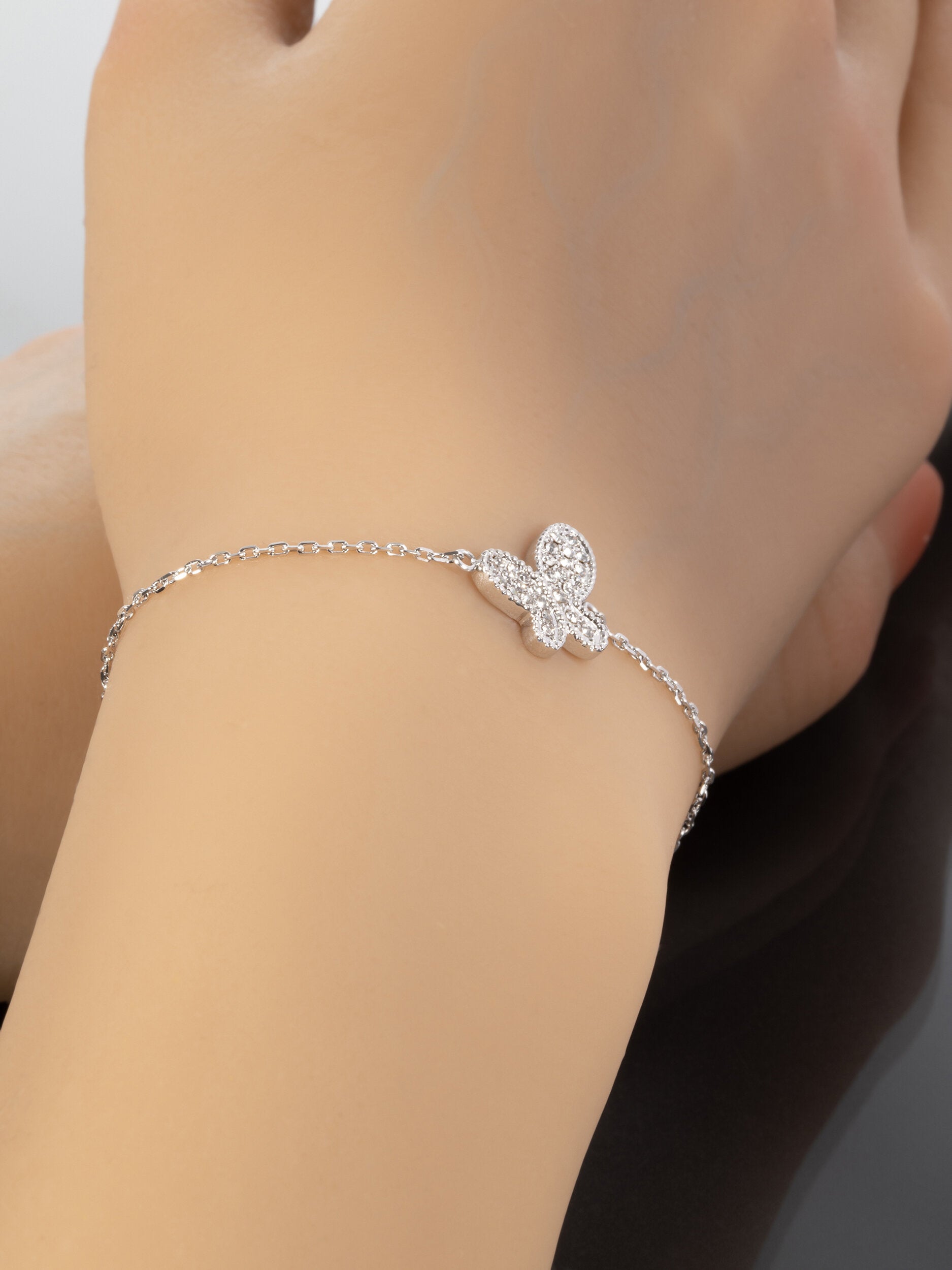 Tento jedinečný náramek si zamilujete! Náramek je z chirurgické oceli, která nemění barvu a je hypoalergenní. Náramek je zdoben motýlkem osazeným krystalky. Zapínání je na karabinku, díky které upravíte délku náramku. Udělejte si i vy radost s tímto jedinečným kouskem, který vám přinese štěstí.