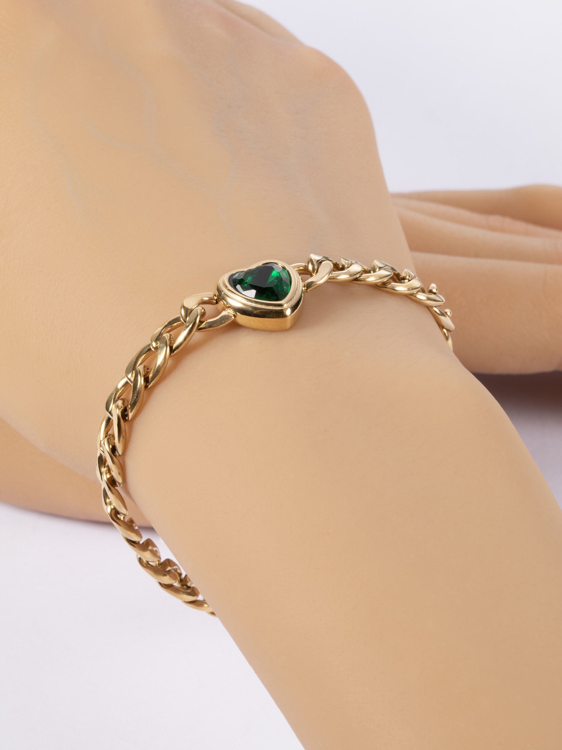 Náramek je z chirurgické oceli, která nemění barvu a je hypoalergenní. Náramek je zdoben srdíčkem se zeleným krystalem. Zapínání je na karabinku pomocí které upravíte délku náramku. Udělejte si i vy radost s tímto elegantním doplňkem!
