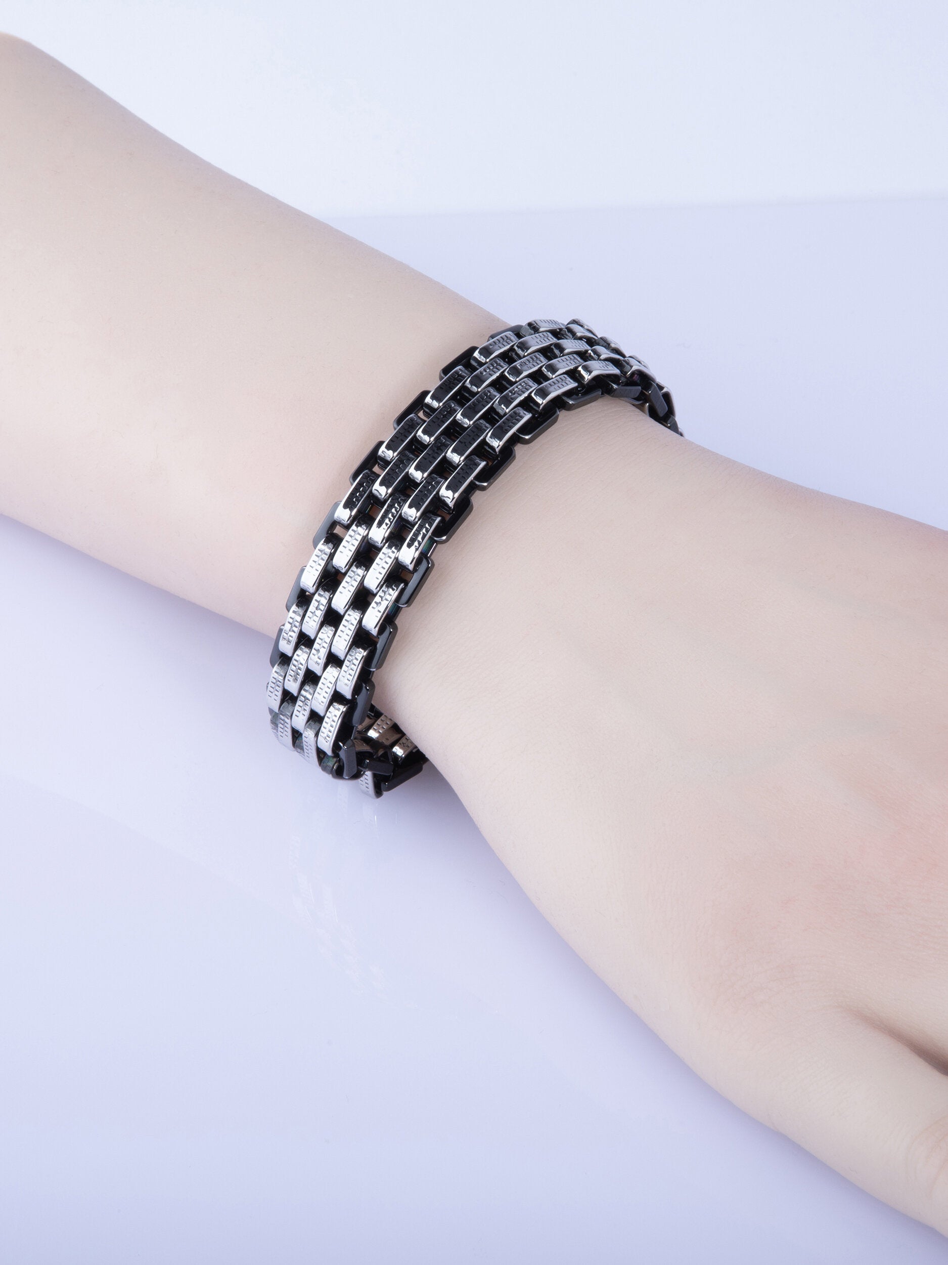 Pánský náramek, vyrobený z chirurgické oceli stříbrné barvy. Zapínání je na karabinku. Náramek je odolný a kvalitně zpracovaný. Nemění barvu a je vhodný pro alergiky.