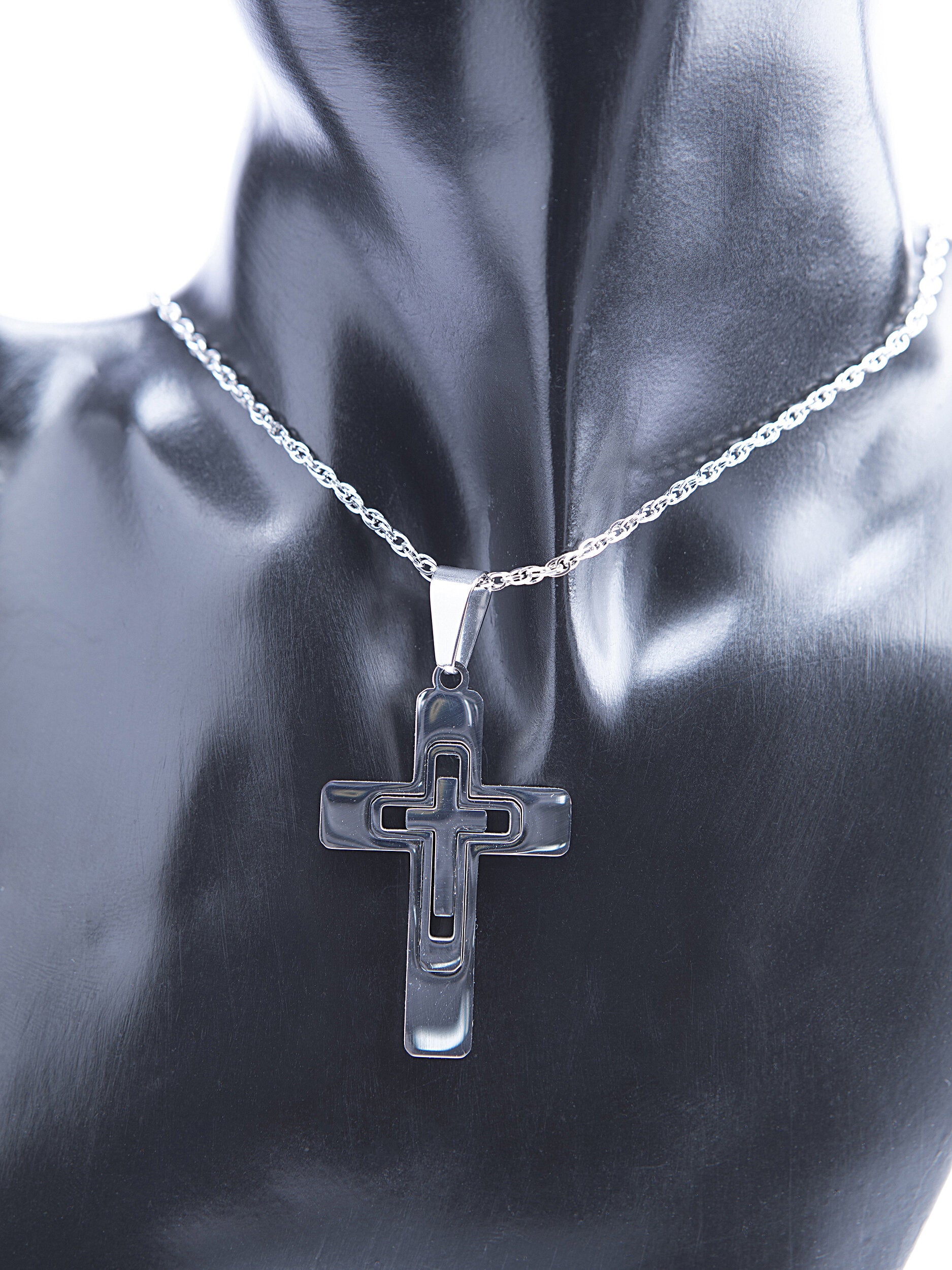 Nápadný přívěsek z chirurgické oceli, která nemění barvu a je hypoalergenní. Přívěsek má délku cca 4,5 cm, je precizně zpracován, motiv leštěný kříž. Udělejte si i vy radost tímto jedinečným a nepřehlédnutelným kouskem! Vhodný jak pro muže, tak pro ženy.