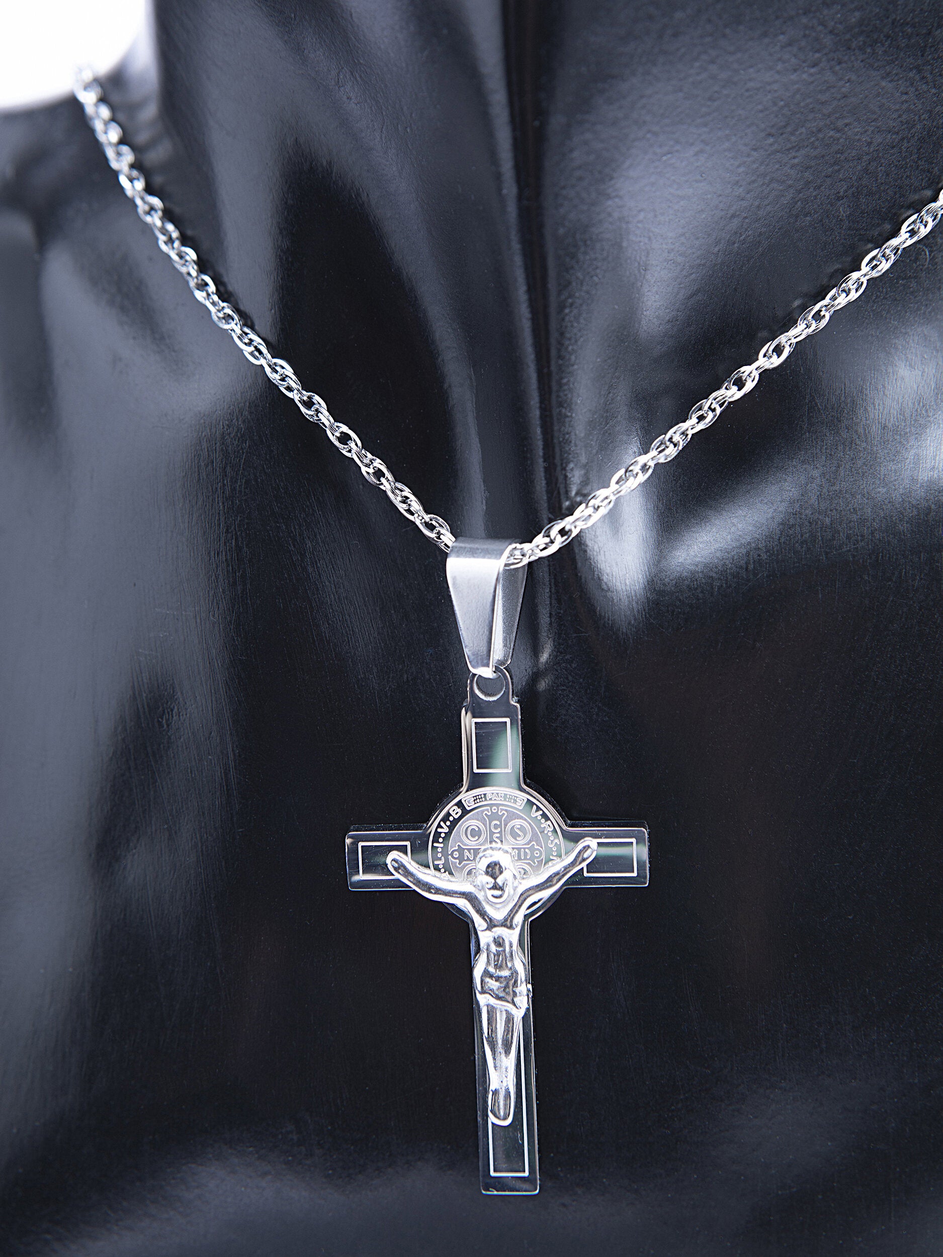 Lesklý nápadný přívěsek z chirurgické oceli, která nemění barvu a je hypoalergenní. Přívěsek má délku cca 4,7 cm, je precizně zpracován, motiv kříž s Ježíšem. Udělejte si i vy radost tímto jedinečným a nepřehlédnutelným kouskem! Vhodný jak pro muže, tak pro ženy.
