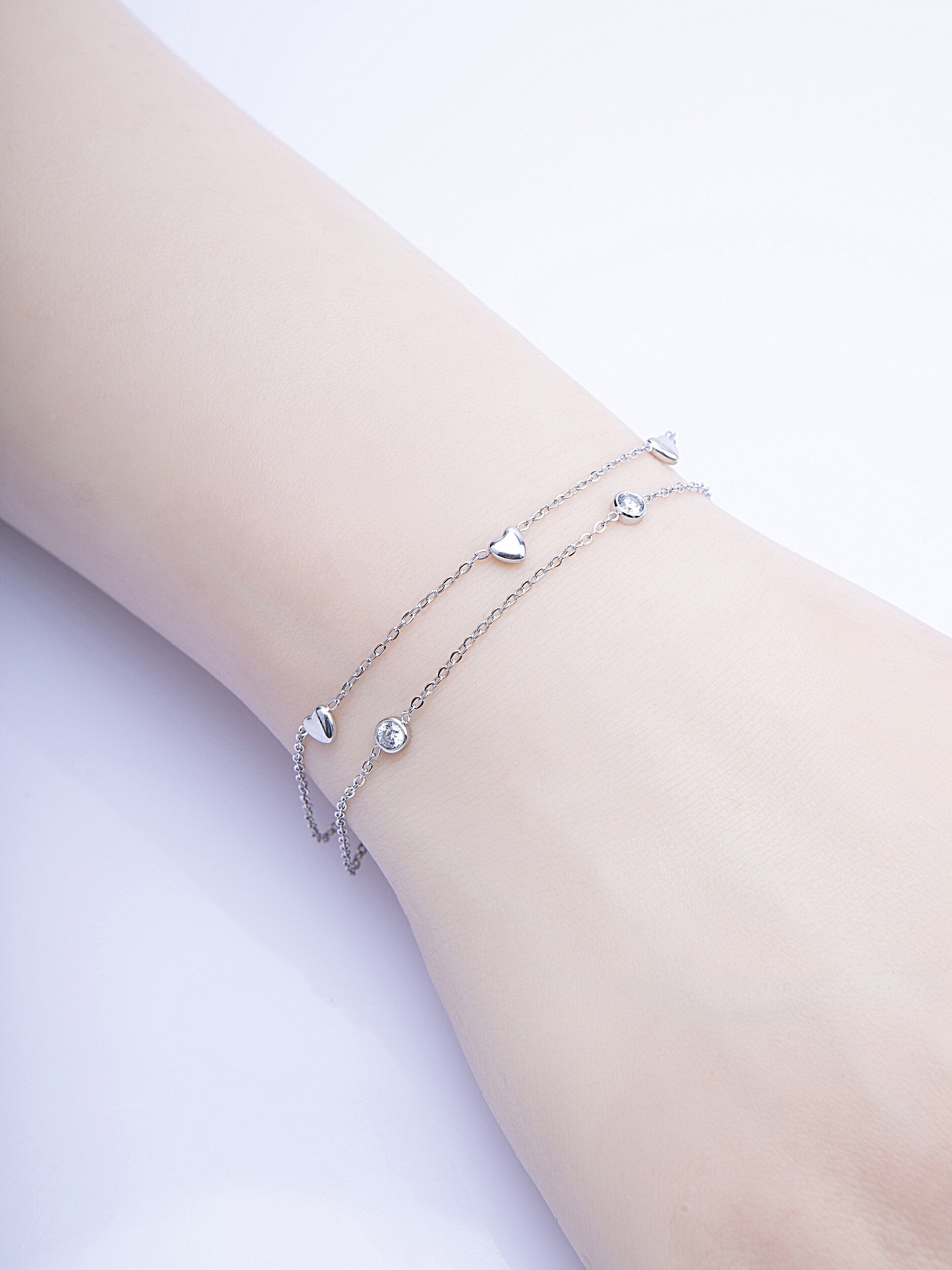 Tento kouzelný náramek ze dvou řetízků si zamilujete! Náramek je z chirurgické oceli, která nemění barvu a je hypoalergenní. Na náramku najdete přívěsky ve tvaru srdíčka. Zapínání náramku je na karabinku. Udělejte si radost tímto kouzelným doplňkem i vy!